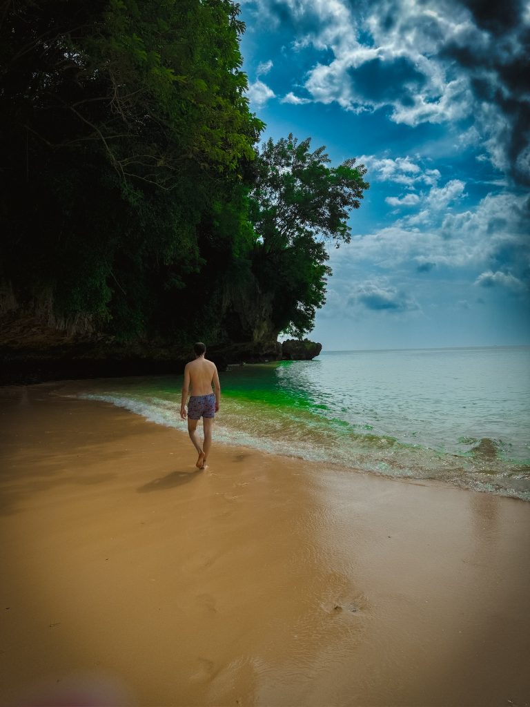 So mieteten wir wieder einen Fahrer, der uns zu einem bekannten Strand in Uluwatu brachte. Direkt zum Uluwatu Beach. Ursprünglich wollten wir ein wenig Strandhopping betreiben und verschiedene Strände in Uluwatu sehen. Leider war das aus zwei Gründen nicht möglich: Es regnete am Vormittag/Mittag stark und mir ging es durch eine Panikattacke, die ich im Wasser bekam leider nicht sehr gut. Die Panikattacke entstand dadurch, dass ich in einer Strömung festhing und nicht mehr rauskam. Das Meer rund um Bali ist wirklich sehr wild und man muss echt aufpassen.