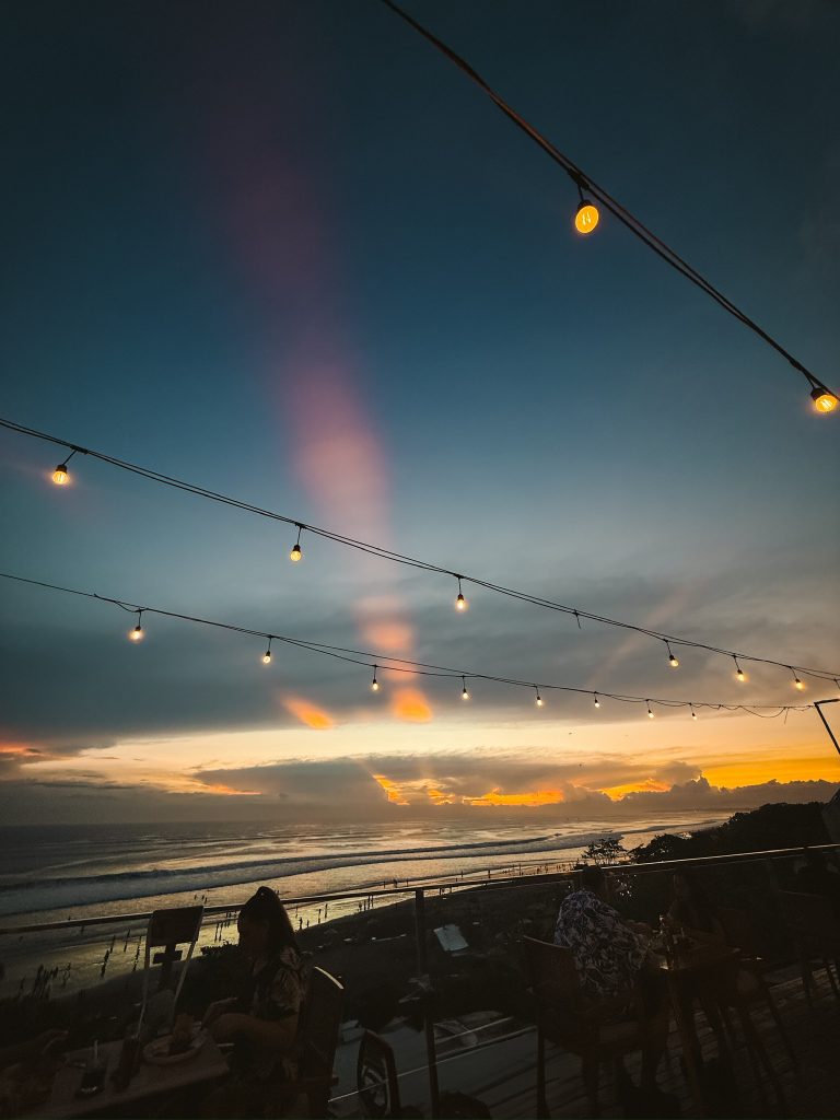 Unseren letzten Tag in Seminyak genossen wir in den Wellen am Strand, mit Massagen, einem guten Essen beim Sonnenuntergang und der wahrscheinlich weirdesten Bar in der wir jemals waren. Die Bar ist, trotz sehr touristischem Charakter sehr zu empfehlen:
