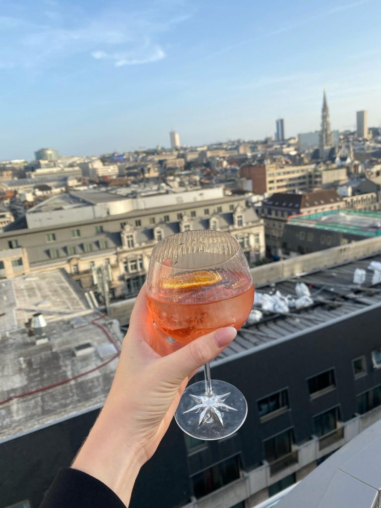 Zugegeben, Rooftop-Bars gibt es in Brüssel tatsächlich zuhauf. Wir haben uns für diese entschieden, einfach, weil sie uns von der Innenstadt aus des Öfteren aufgefallen war. Dass wir auch hier ziemlich lange anstehen mussten, war uns tatsächlich nicht bewusst. Aber der Ausblick hat sich absolut gelohnt. Für den zahlt man auch erstmal nichts. Nur wenn man sich ein Drink oder etwas zum Essen holt muss man dafür selbstverständlich bezahlen.