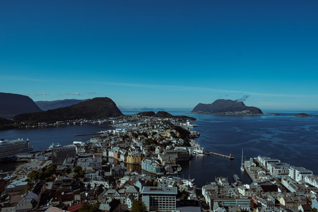Alesund ist eine Hafenstadt an der Westküste von Norwegen. Das kleine Städtchen lädt zum Träumen und Verweilen ein. Wir machten uns direkt auf zum Berg „Aksla“ und das hat sich gelohnt, kann ich euch sagen. Der Berg liegt mitten in der Stadt und bietet daher eine wundervolle Aussicht über das Meer und Alesund selbst mit seinen niedlichen, bunten Häusern und Gassen. Atemberaubend! Es fühlt sich einfach an wie eine Stadt mitten im Meer!