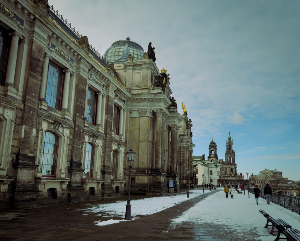 Unser Spaziergang führte uns an der Frauenkirche vorbei und quasi von hinten über die Brühlsche Terasse an der Elbe. Besonders im Winter mit all dem Schnee war diese ein ganz besonderes Highlight.